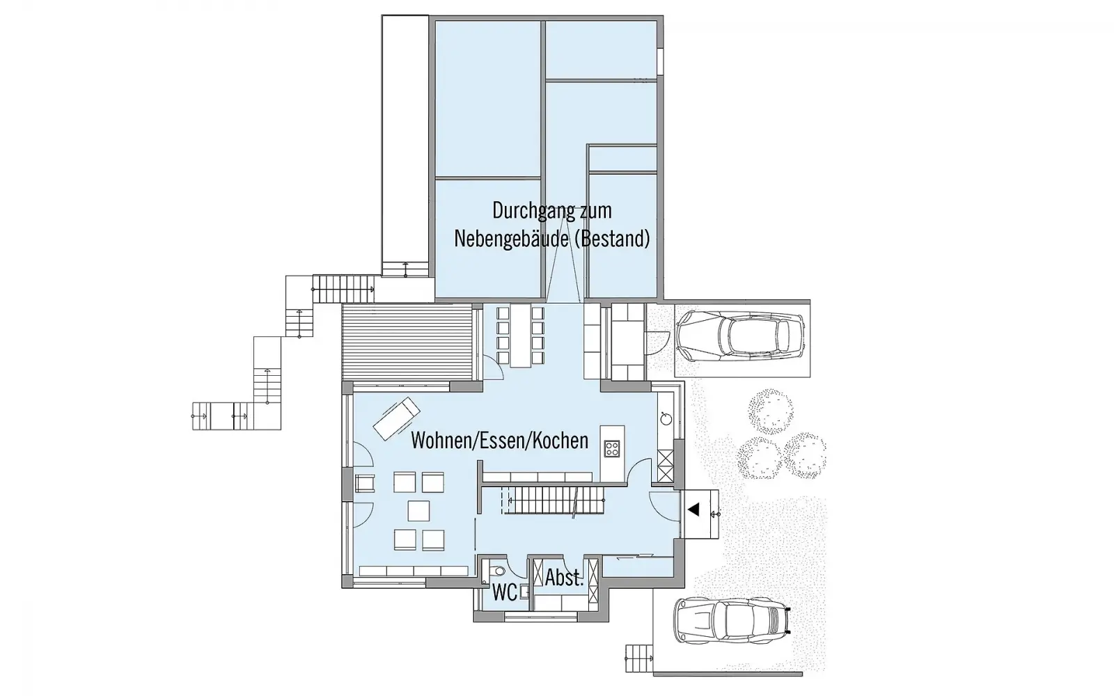 - Ein Pultdach bietet volle Wohnraumnutzung im Obergeschoss mit viel Tageslichteinfall