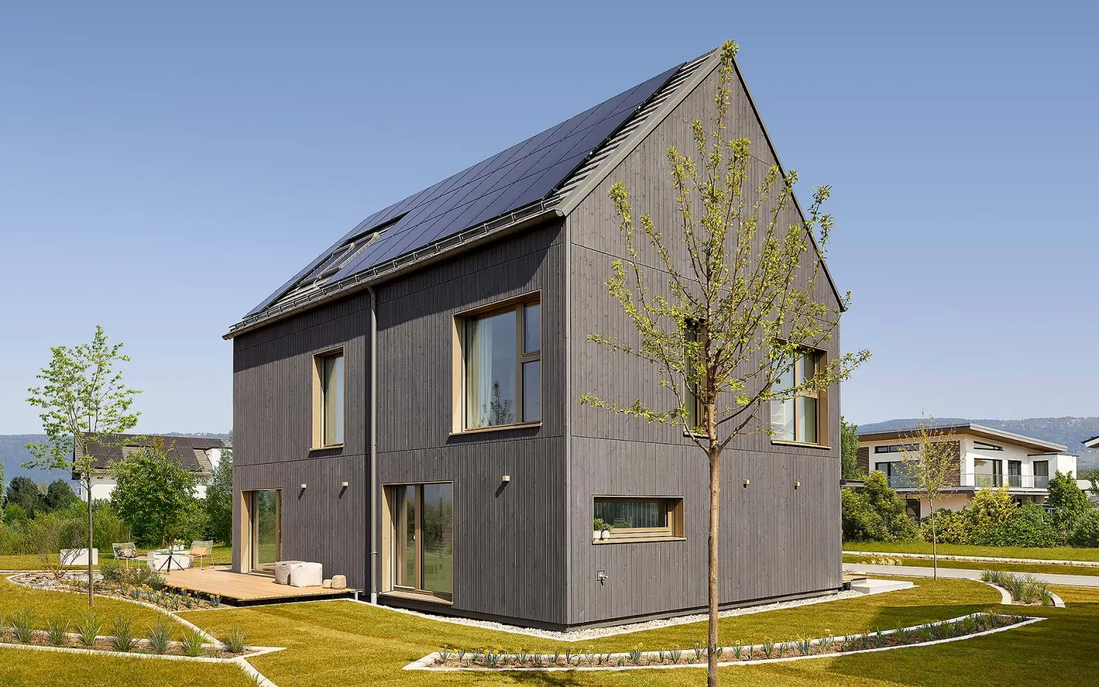 - Das Satteldach ist sehr gut für die Installation von Fotovoltaikanlagen geeignet