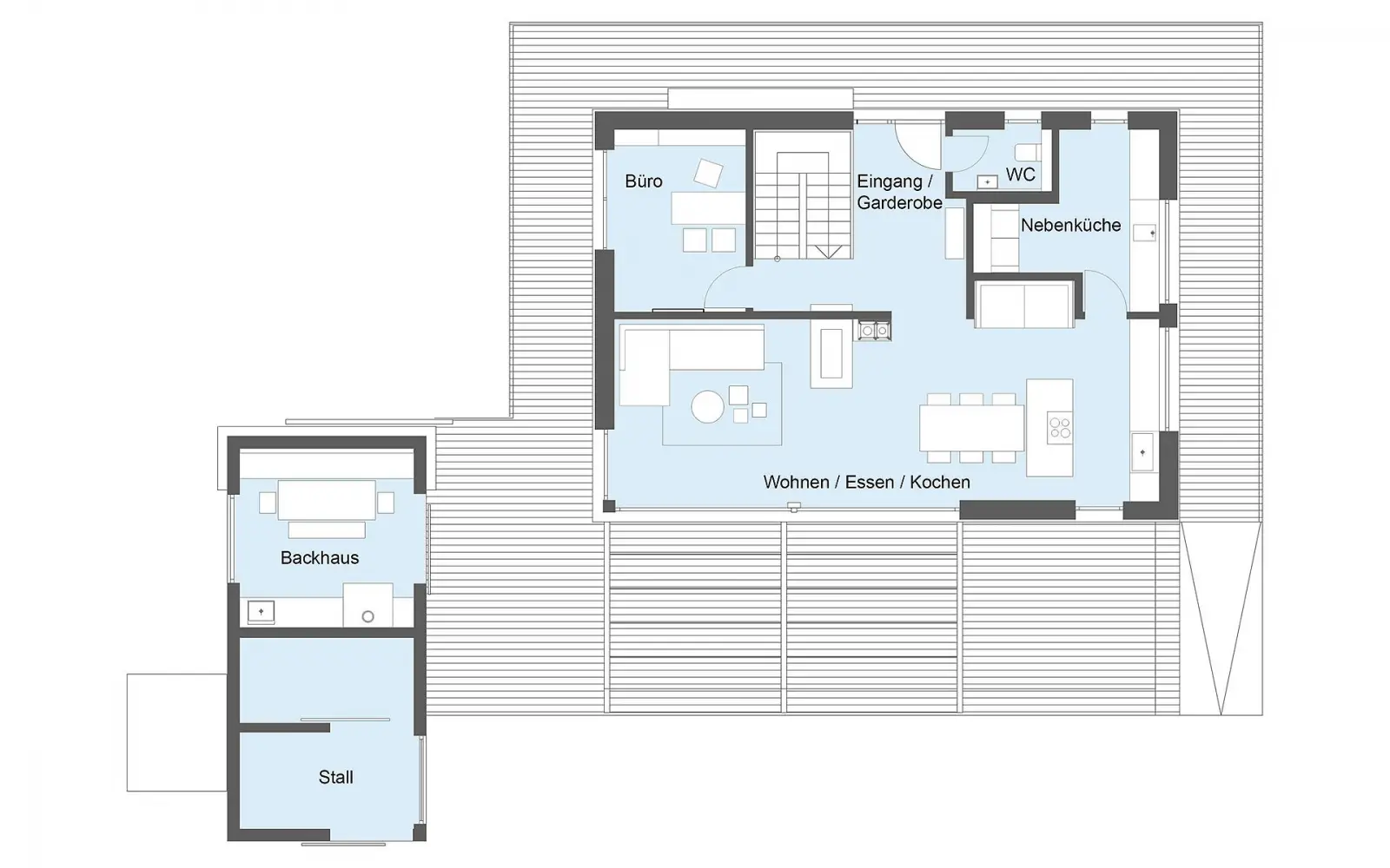- Bei einem Satteldach ist die Eindeckung mit umweltfreundlichen Naturmaterialien möglich