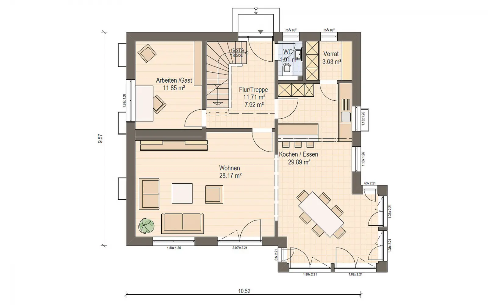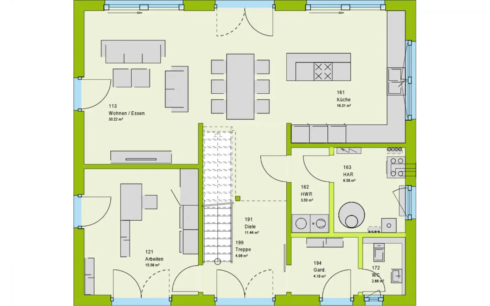 - Bauliche Sonderwünsche wie etwa Gauben sind bei einem Satteldach problemlos umsetzbar