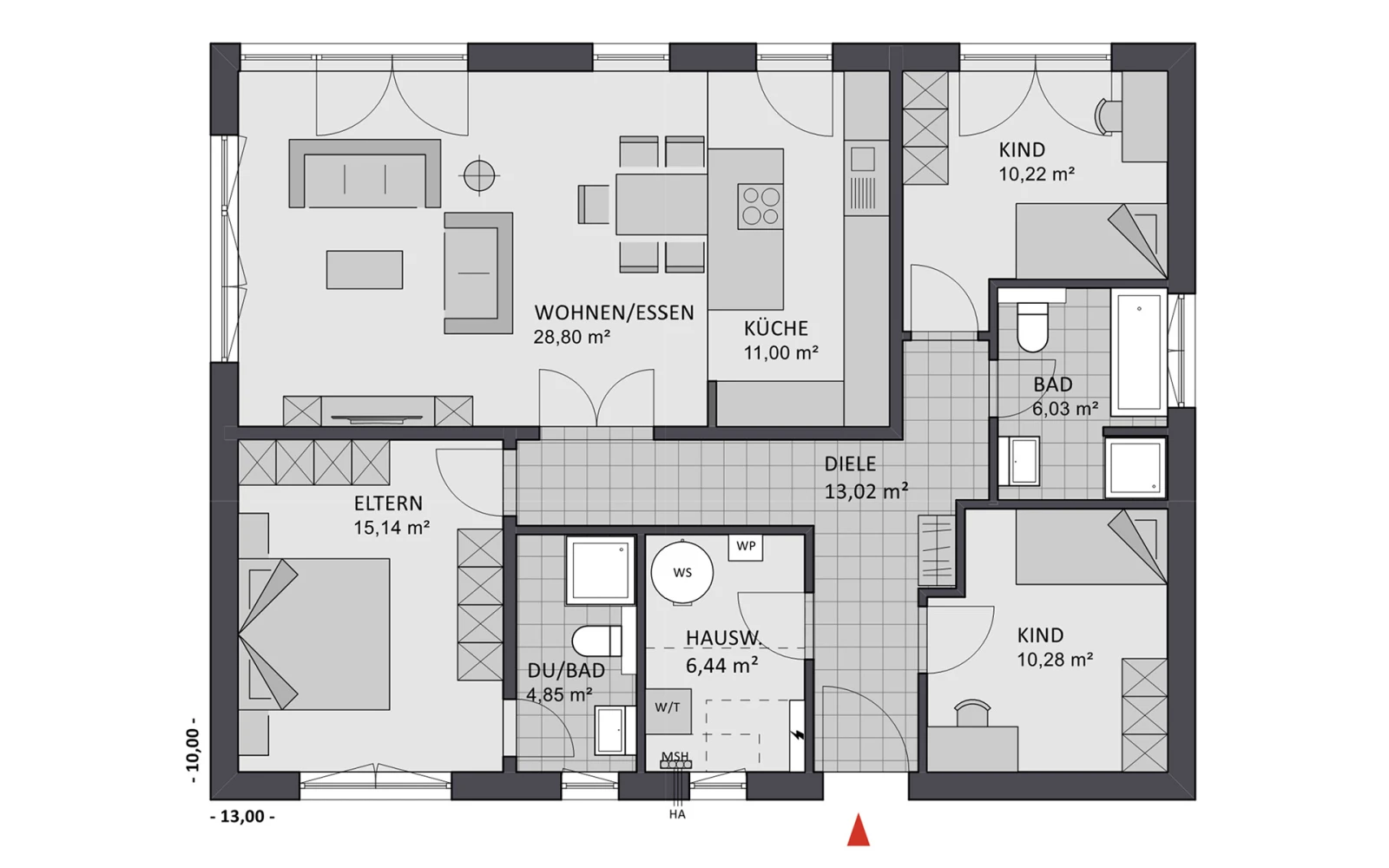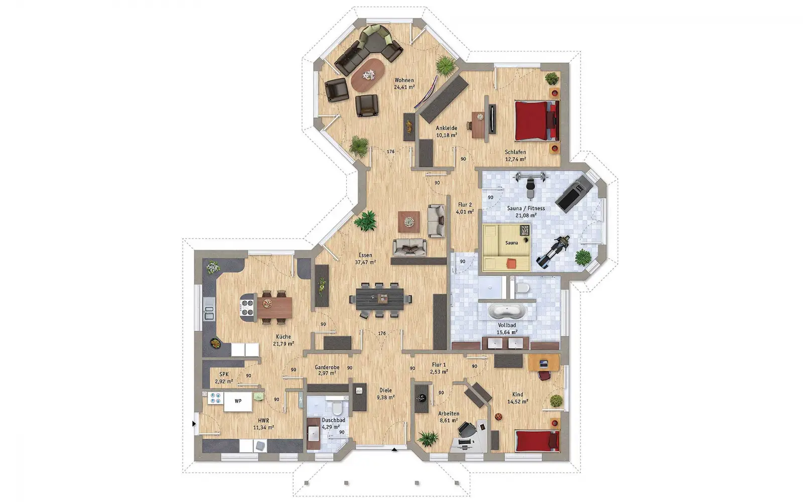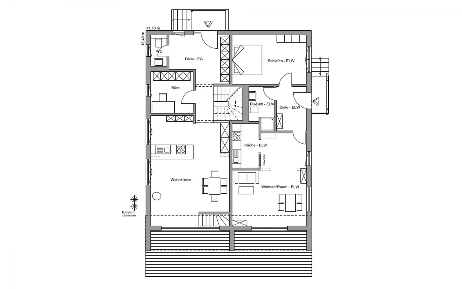 - Sonderkonstruktionen wie beispielsweise überdachte Balkone sind bei Walmdachhäusern möglich
