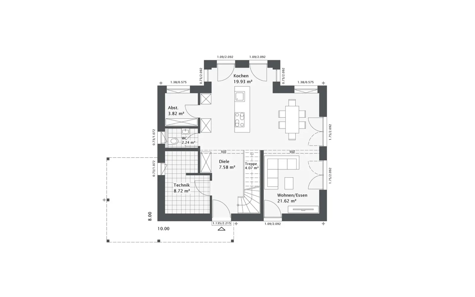 - variabel an die jeweiligen Lebensumstände anpassbare Wohnflächen – spätere Anbauten bei gegebenen Platzverhältnissen möglich