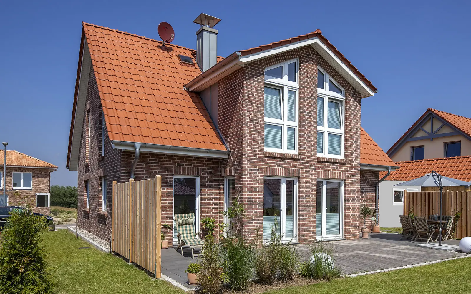 Kubushäuser sind moderne, meist quadratische Bauten – schlicht und gradlinig. Sie unterliegen dem Einfluss des Bauhausstils und ihr Markenzeichen ist ein Flachdach, das ihnen ihr würfelförmiges Aussehen verleiht. Die Nutzung der Flachdachfläche für eine zusätzliche Terrasse oder zum Aufbau einer Fotovoltaikanlage bietet sich an.Der Satteldach-Klassiker als Familienhaus