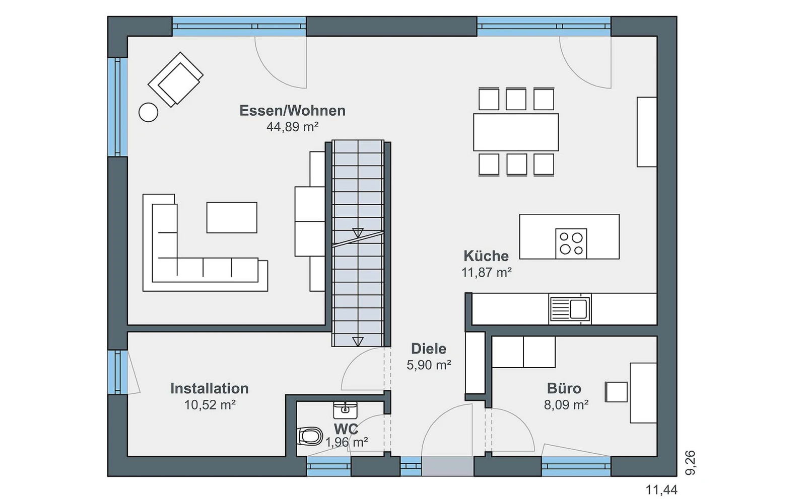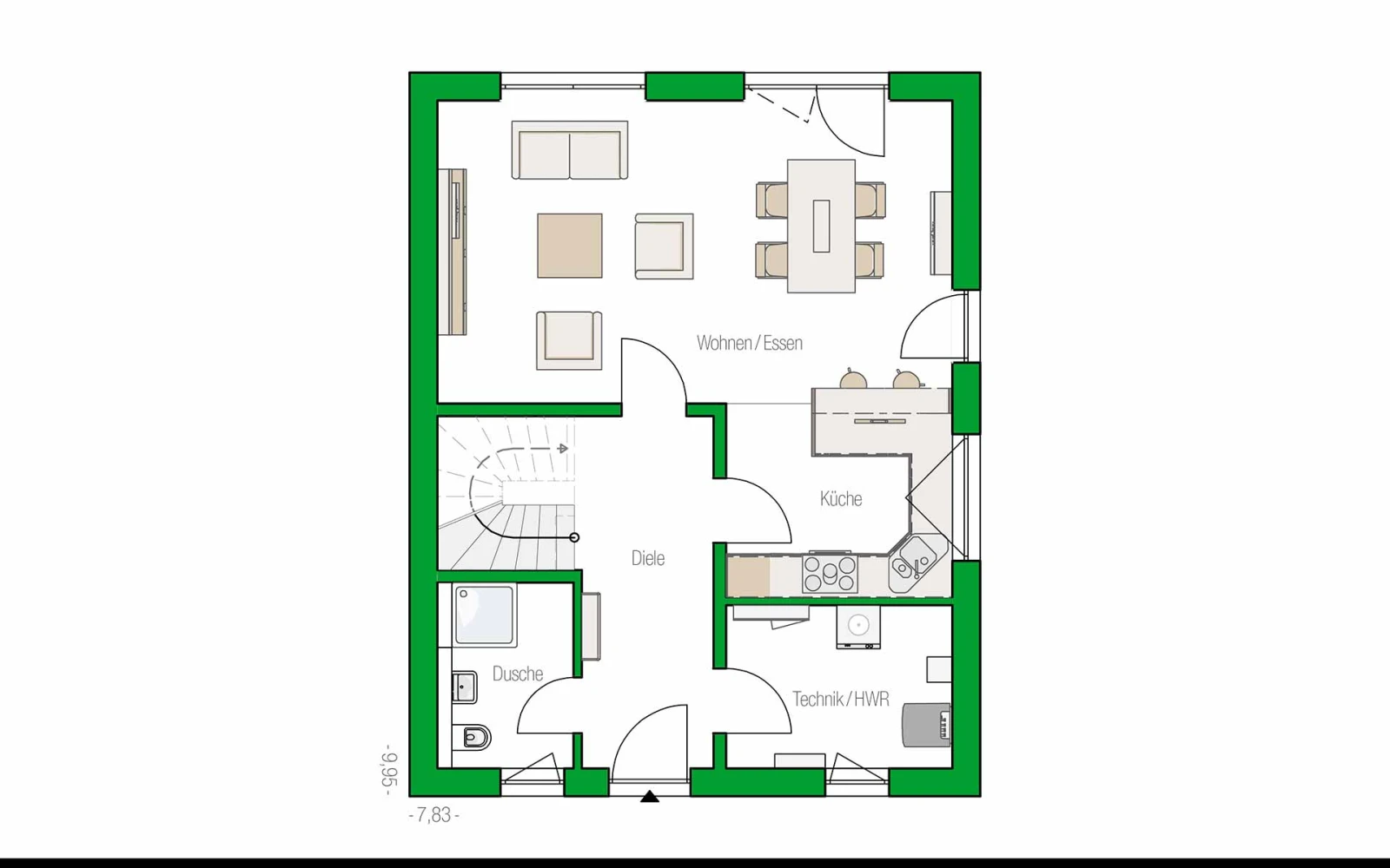 - variabel an die jeweiligen Lebensumstände anpassbare Wohnflächen – spätere Anbauten bei gegebenen Platzverhältnissen möglich