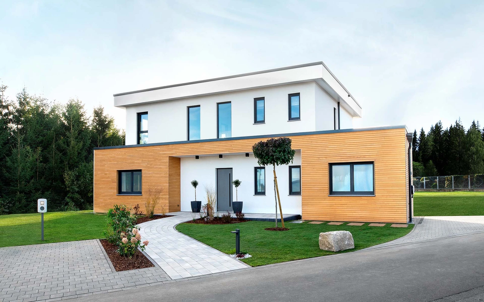 Die reduzierte Optik von Kubushäusern ist wie geschaffen für extrabreite oder bodentiefe Fensterfronten und große Türen. Integrierte Oberlichter lassen noch mehr Helligkeit ins Hausinnere – so entstehen freundliche Räume mit viel Tageslicht, die für das Plus an Gesundheit und Lebensqualität sorgen. Durch modernste Technik ist eine effiziente Wärmedämmung auch bei der Verwendung von vielen Glaselementen in der Gebäudehülle gewährleistet.Ein Kubushaus können Sie bis ins kleinste Detail nach Ihren persönlichen Vorlieben planen. Einzelne Flächen sind für den privaten Rückzug wahlweise mit zusätzlichen Wänden schließbar oder aber für die kommunikativen Hausbereiche vollständig zu öffnen. Die reduzierte Architektur macht hier auch im Hinblick auf potenzielle Anbauten fast alles möglich – von der passenden Garage bis hin zur harmonisch in das Gesamtbild integrierten Einliegerwohnung.