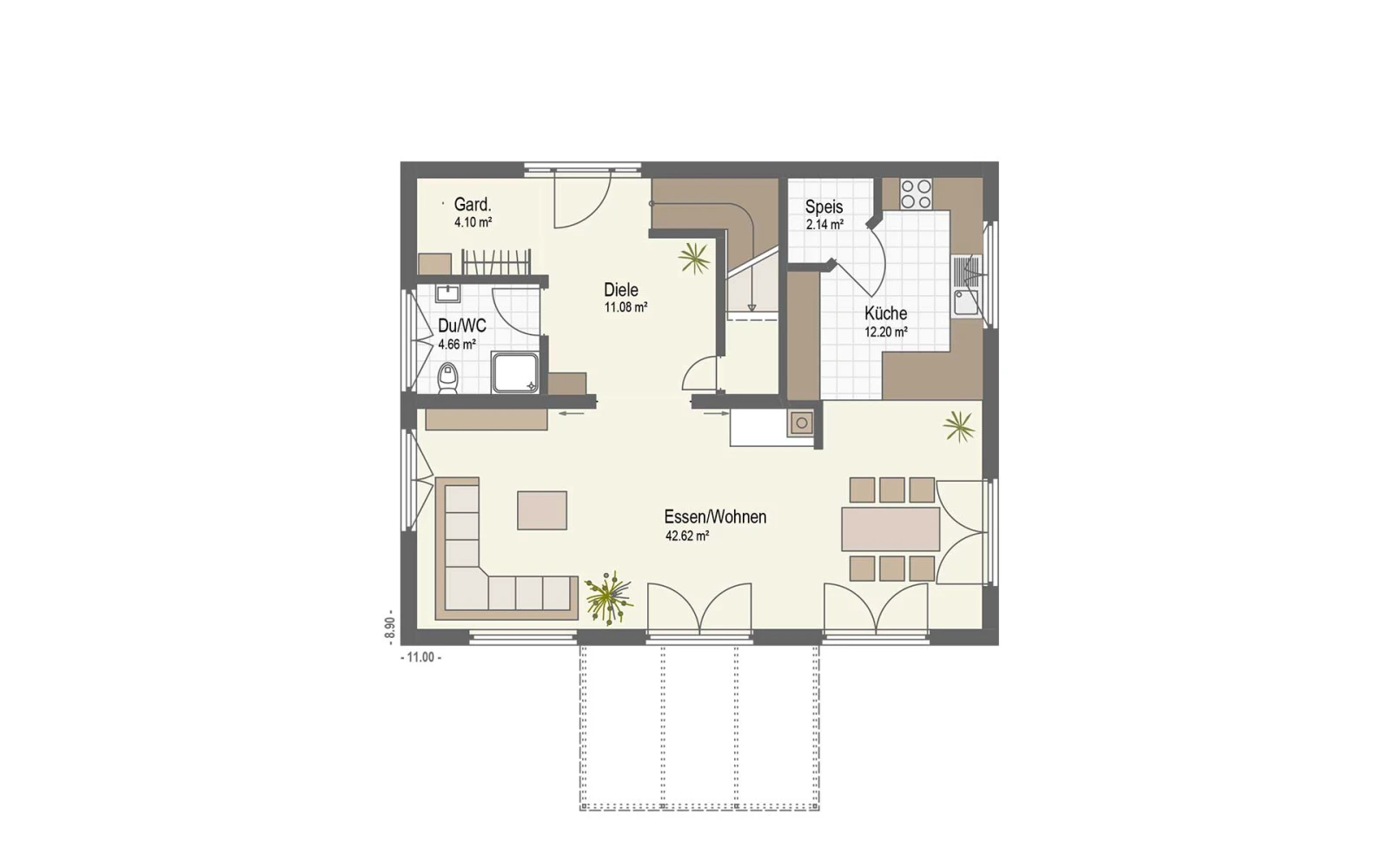 Im Folgenden finden Sie einige Grundriss-Beispiele für Landhäuser, die Sie jedoch gemeinsam mit dem jeweiligen Haushersteller abwandeln, anpassen oder ganz neu planen