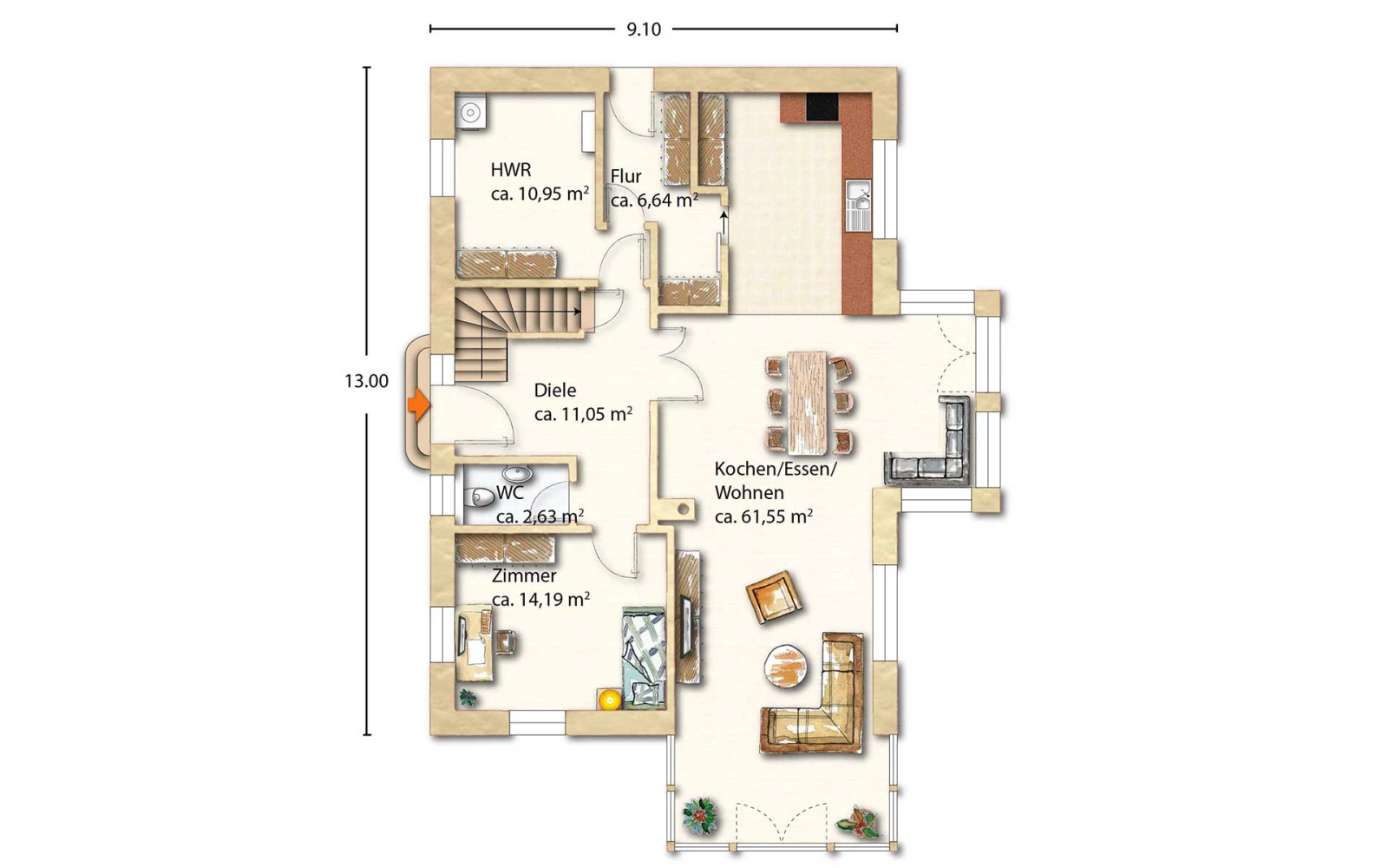 Im Folgenden finden Sie einige Grundriss-Beispiele für Schwedenhäuser, die Sie jedoch gemeinsam mit dem jeweiligen Haushersteller abwandeln, anpassen oder gänzlich neu planen können. Für die meisten Wünsche halten die Anbieter Musterlösungen parat, die clever durchdacht und zudem preiswert sind.