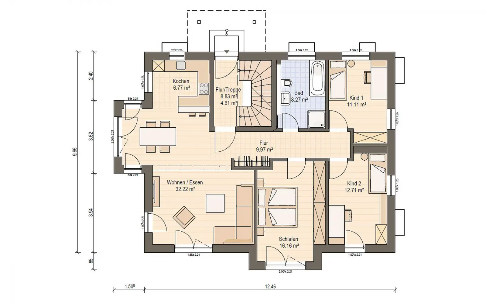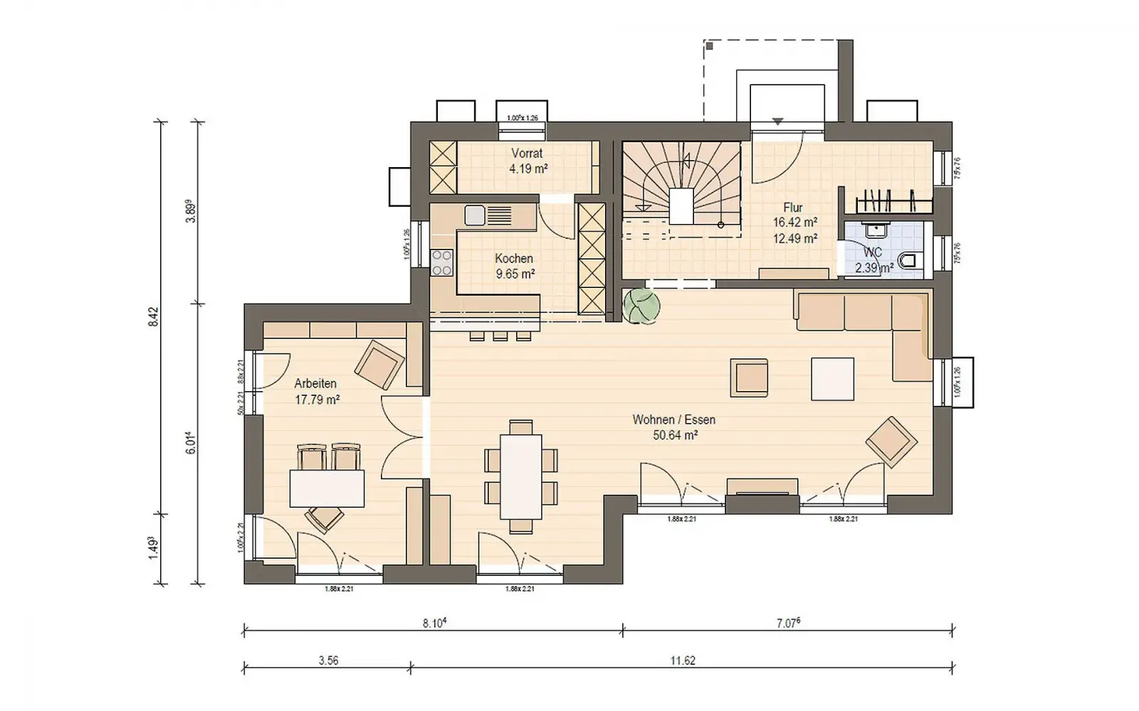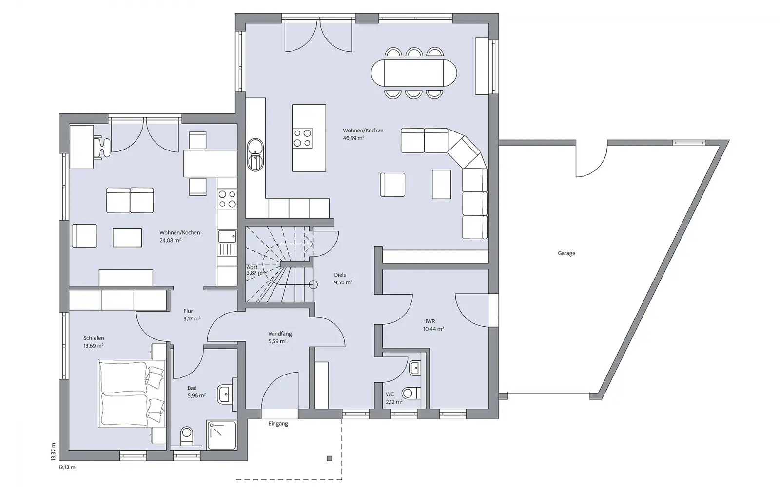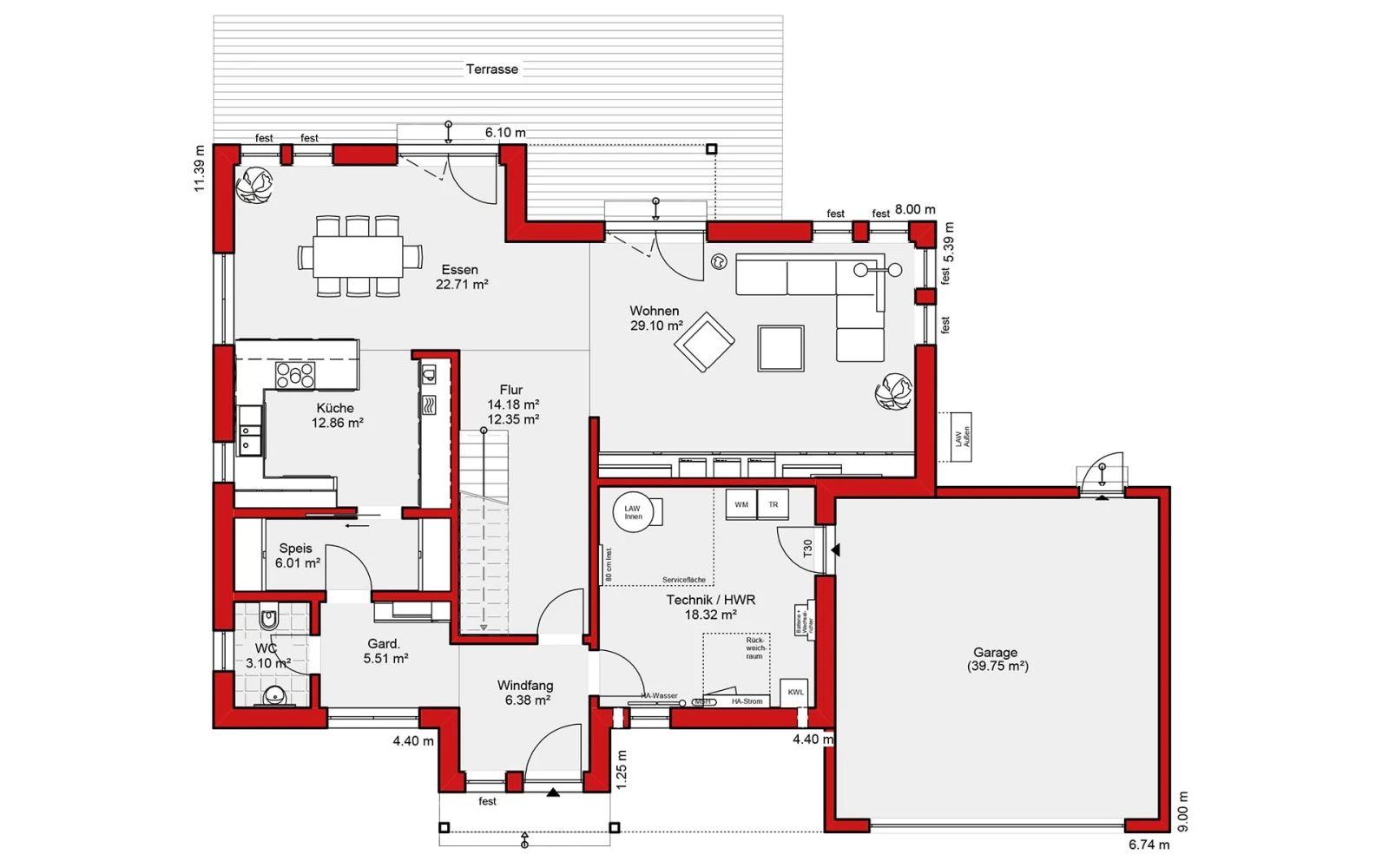 Steht eine bestimmte Quadratmeterzahl im Raum, fällt es vielen Häuslebauern schwer, sich anhand dieser Information die tatsächlichen Verhältnisse der Wohraumgröße vorzustellen. Im Folgenden finden Sie daher einige Grundriss-Beispiele der einzelnen Geschosse ausgewählter Stadtvillen, die Sie jedoch gemeinsam mit dem jeweiligen Haushersteller abwandeln, anpassen oder ganz neu planen können. Für viele Wünsche haben die Anbieter bereits Musterlösungen parat, die clever geplant und preiswert sind. Zur noch besseren Visualisierung schauen Sie sich auch gerne die ausdrucksstarken Bilder zu den Außenansichten und Inneneinrichtungen der Stadtvillen auf unseren Musterhaus-Detailseiten an.