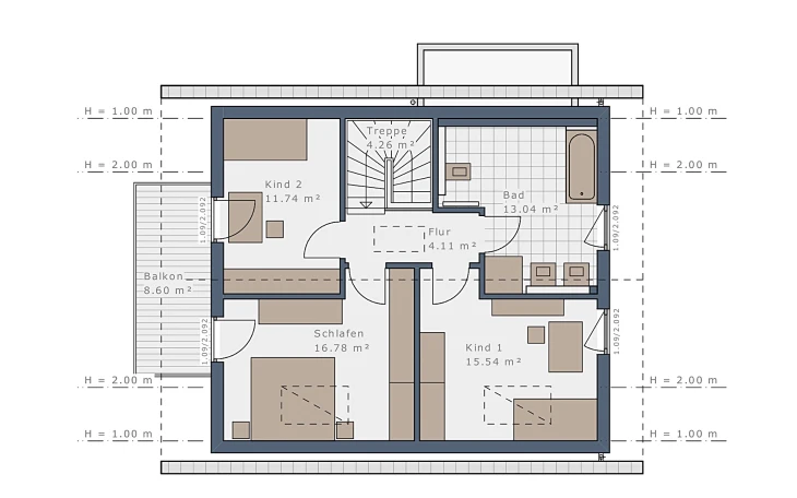 Das Haus Sensation-E-132 E1 von Schwabenhaus ist ein Familienhaus im modernen Stil mit einer Fläche von 132,25 m² auf 1,5 Etagen. Die Wohnfläche teilt sich auf 4 Zimmer auf, davon 3 Schlafzimmer.Dieses Einfamilienhaus mit Satteldach wird in der Bauweise Fertighaus errichtet und erfüllt den Energiestandard Effizienzhaus 55.