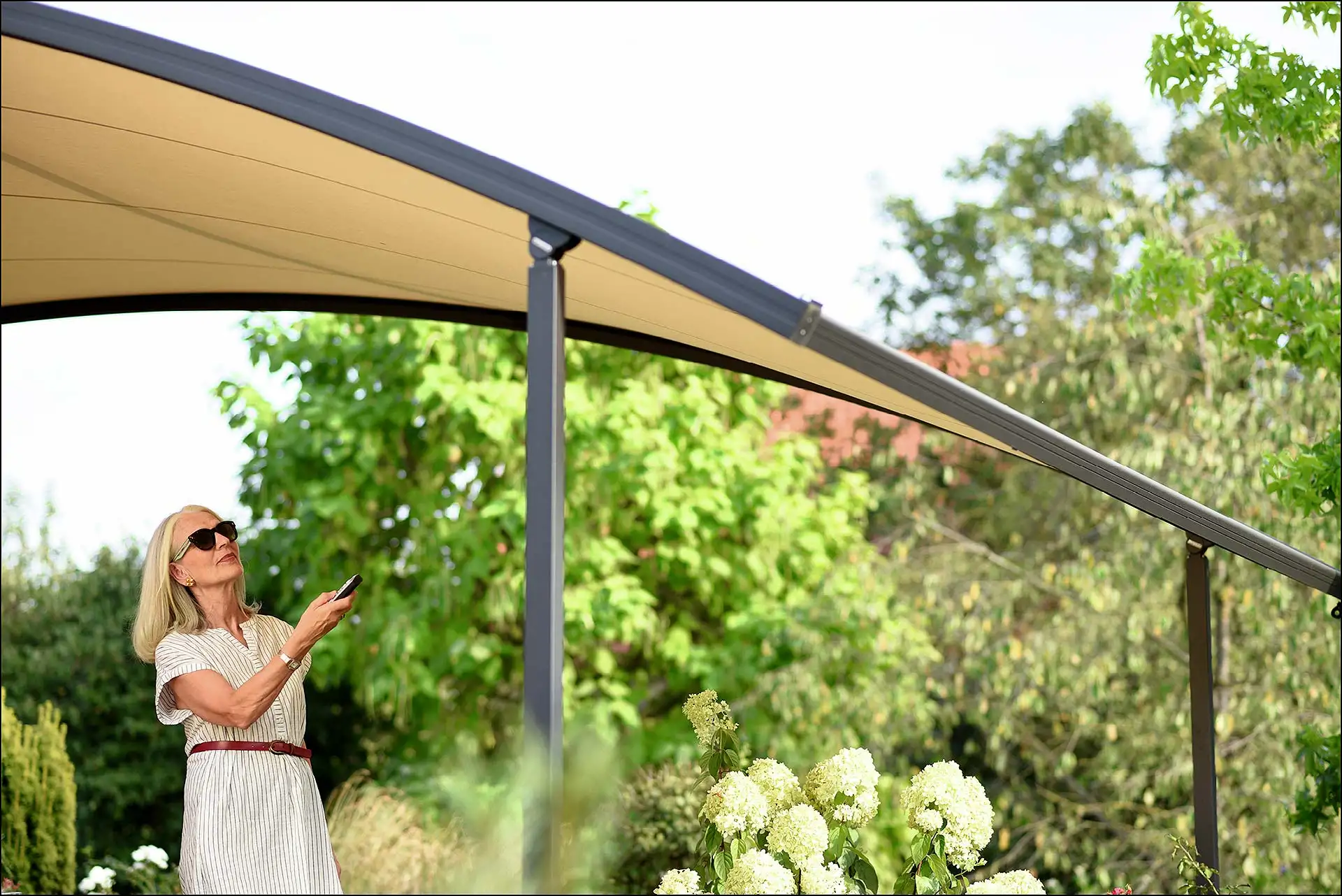 Um den Komfort in der Sommersaison zu erhöhen, könnten bestehende Sonnenschutzprodukte auch nachträglich mit Steuerung und Motor ausgestattet werden. Dann fährt beispielsweise die Markise einfach über Sensoren oder per Fernbedienung aus und ein. Noch bequemer geht es, wenn der Sonnenschutz ins Smart-Home-System eingebunden ist; so. lässt sich die Steuerung kinderleicht per Smartphone oder Tablet bedienen.